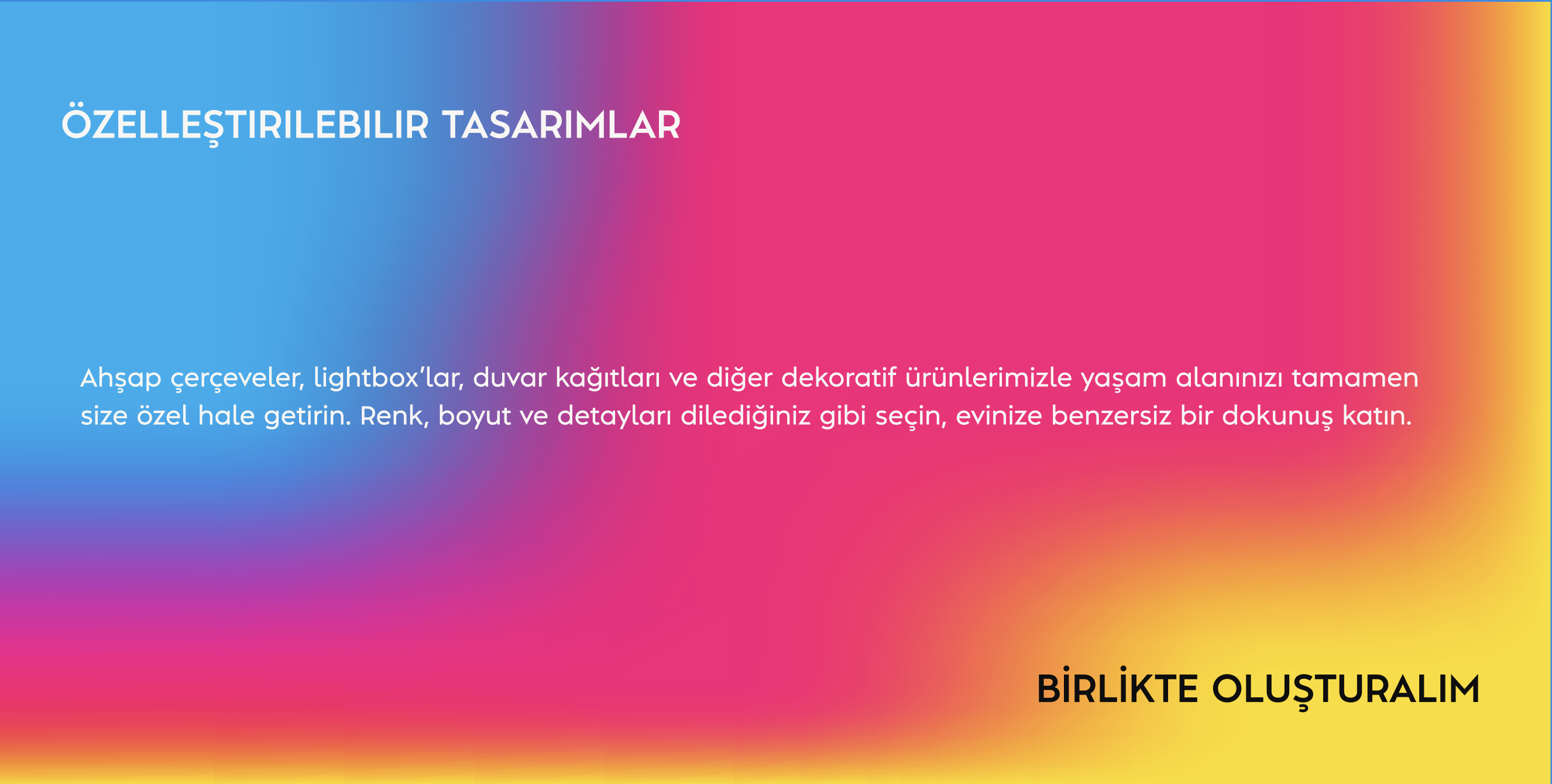 Wallcrea, ahşap çerçeve, duvar kağıdı, lightbox ve tablo üretimini kendi bünyesinde, yüksek kalite standartlarıyla gerçekleştirmektedir. Tüm ürünlerimizde yalnızca birinci sınıf hammaddeler kullanarak uzun ömürlü ve estetik çözümler sunuyoruz. Üretimin her aşamasında insan sağlığına ve çevreye duyarlı bir yaklaşımı benimsiyor, sürdürülebilirliği üretim politikamızın merkezine alıyoruz.